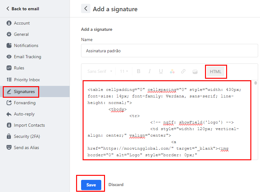 5 – Cole o conteúdo da sua assinatura (Obtenha o conteúdo na lista logo mais abaixo nesta página).